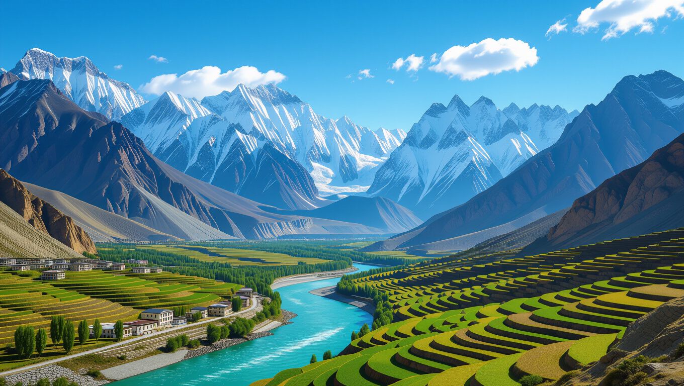 Pakistan spans varied terrains from north to south. The Himalayas rise in the north with peaks over 8000 meters. Karakoram range hosts K2, the second highest mountain. Indus River cuts through the land and creates fertile plains. Balochistan deserts stretch wide with sandy dunes. Coastal areas along the Arabian Sea add beaches and mangroves. Each region offers distinct views and climates.
